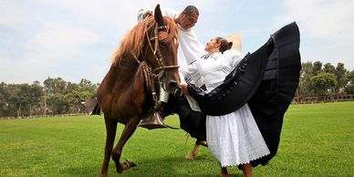 Enjoy a diverse criollo buffet, accompanied by a show of traditional music and dance. Then, be thrilled by a stellar performance of Peruvian Paso Horses, showcasing exciting and elegant displays. The highlight of the show features the formation of the chalanes, expert horsemen, and the Marinera dance both on foot and on horseback. After the show, you'll have the chance to take photos with the artistic cast.